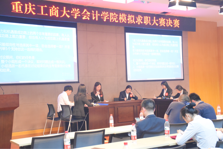 为进一步传播和普及职业生涯规划理念,帮助员工提高综合能力,学习与掌握职业生涯的基本方法、树立正确的就业观和职业观,使员工在步入职场时更具优势。bb贝博艾弗森官方网站于2019年5月30日19:00在南岸校区图书馆多功能报告厅举办了模拟求职决赛。莅临本次比赛的领导和评委老师有bb贝博艾弗森官方网站分党委尹建平副书记、bb贝博艾弗森官方网站黄辉副经理、重庆天健会计师事务所人力资源部廖小娅经理、中汇富通融资租赁(深圳)有限责任公司运营总监刘卫星先生、bb贝博艾弗森官方网站学团办主任彭文涛老师以及辅导员王婷老师。