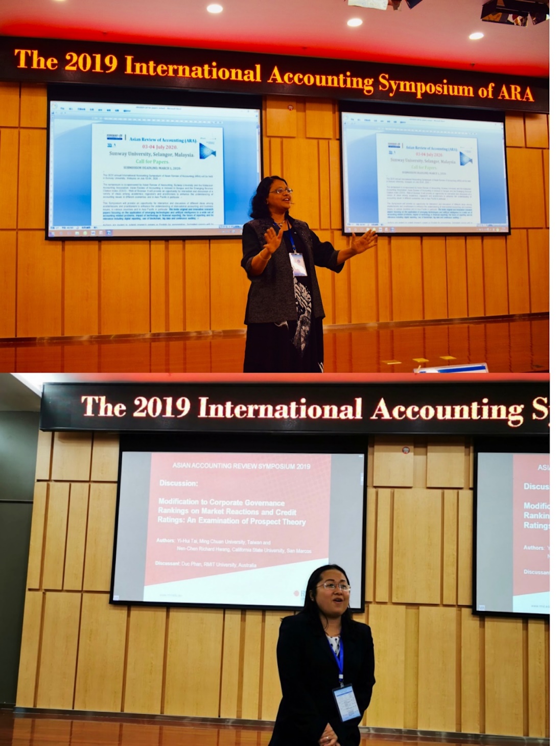 最后,下一届承办方澳大利亚皇家墨尔本大学的Duc Phan教授和马拉西亚双威大学、马拉西亚会计学会会长Susela Devi教授分别发言。他们首先对ballbet贝博官方网站成功举办2019年亚洲会计评论学术年会表示祝贺,并对有机会承办2020年学术研讨会表示衷心的感谢。随后,Duc Phan教授和Susela Devi教授分别通过短视频方式对皇家墨尔本大学和双威大学进行了介绍,并诚挚邀请各位专家学者参加2020年的学术年会。