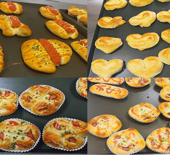 接下来,同学们学习了肉松面包、培根面包的制作方法。老师依然细心地为大家讲解制作过程。同学们将做好造型等待烘焙的一个个面包放入烤盘里面摆放好,开心的同时也十分期待面包出炉的那一刻。