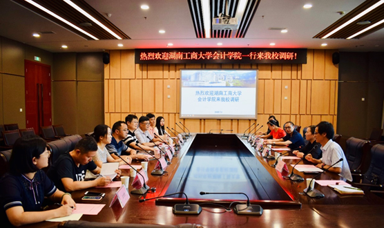 7月1日下午,湖南工商大学bb贝博艾弗森官方网站学科负责人朱开悉教授、bb贝博艾弗森官方网站副经理龙立教授、bb贝博艾弗森官方网站副经理王青松教授等一行8人来bb贝博艾弗森官方网站调研。公司董事长孙芳城教授、bb贝博艾弗森官方网站副经理程文莉教授、bb贝博艾弗森官方网站副经理黄辉教授以及本科、研究生教务人员出席了调研会议。本次会议由bb贝博艾弗森官方网站MPAcc中心主任钟廷勇博士主持。