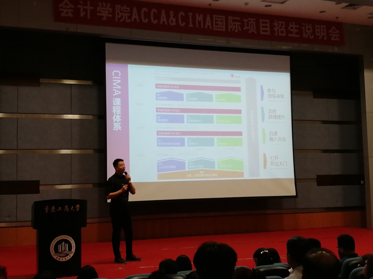 8月31日上午8点,ACCA和CIMA国际项目招生说明会在博智楼7100报告厅准时举行,大会由bb贝博艾弗森官方网站国际项目主任陈利老师主持。黄辉副经理首先致辞,他详细地介绍了bb贝博艾弗森官方网站和国际项目班的办学模式、招生情况和项目优势。紧接着CIMA(中国)西南区代表处朱楚原先生和ACCA(中国)成都代表处王玮女士分别对ACCA和CIMA两个项目进行了详细介绍,让到场的员工和家长深度地了解两个国际项目的发展历程和优势,增添了员工的学习信心。随后,楷博财经员工发展经理蔡洁女士从团队与服务的角度,介绍了楷博财经与学院的长期合作和深入拓展,表示会为学校提供良好的团队力量和优质的教学服务。最后,CIMA和ACCA员工代表彭卓琳、张子煜同学详细讲述了自己在国际项目的学习经历和项目收获。