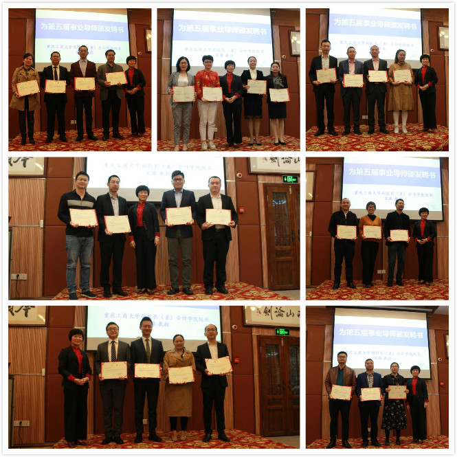 首先,由罗惠玉书记宣读《关于聘任周廷勇、黄文乐等36名同志为ballbet贝博官方网站MPAcc教育中心事业导师的决定》,并由副董事长宋豫教授向到场的事业导师们颁发聘书。