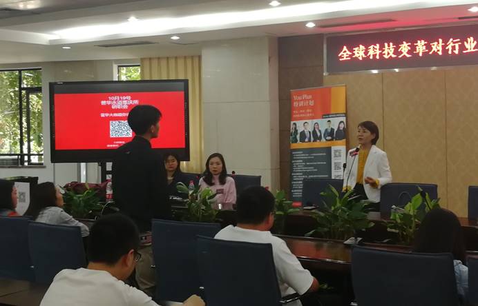 康淑敏女士首先阐述了普华永道对创新服务的见解,深刻分析了在大环境改革下科技发展,全球创新对行业转型带来的影响,紧接着就行业的快速转型对人才需求的变化进行了数据统计分析,明确指出在校员工需要努力提升自己的个人能力,以更新更高的标准要求自己,提前适应日新月异的全球化社会。许春燕女士介绍了普华永道的You Plus特训计划平台,让各位同学了解该平台如何使用和如何利用,并讲解了普华永道的招聘面试等问题。讲座最后有一个讨论与提问环节,同学们积极发表自己的观点,也提出了诸多学习就业等问题,康淑敏与许春燕两位女士在现场都作了耐心细致的答复。