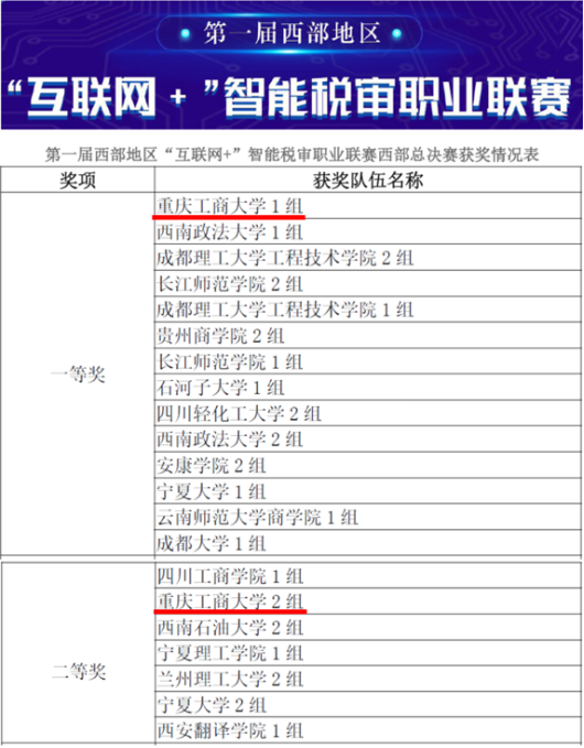 2020年6月13日,由中华会计网校主办、中国高等教育学会高等财经教育分会协办的“首届西部地区‘互联网+’智能税审职业联赛”总决赛在云端拉开帷幕,吸引了西南政法大学、贵州财经大学、西南石油大学等50多所本科高校、2200余人次参赛。bb贝博艾弗森官方网站钟代鑫、陈安娜、李飞越三名同学组成的ballbet贝博官方网站1组一路披荆斩棘,以排名第一的综合成绩斩获一等奖;由康瑜茜、丁俊程、陈欣组成的ballbet贝博官方网站2组也表现优异,荣获二等奖;bb贝博艾弗森官方网站会计学系王成敬副教授和审计学系蒋水全博士荣获“优秀指导教师”奖。