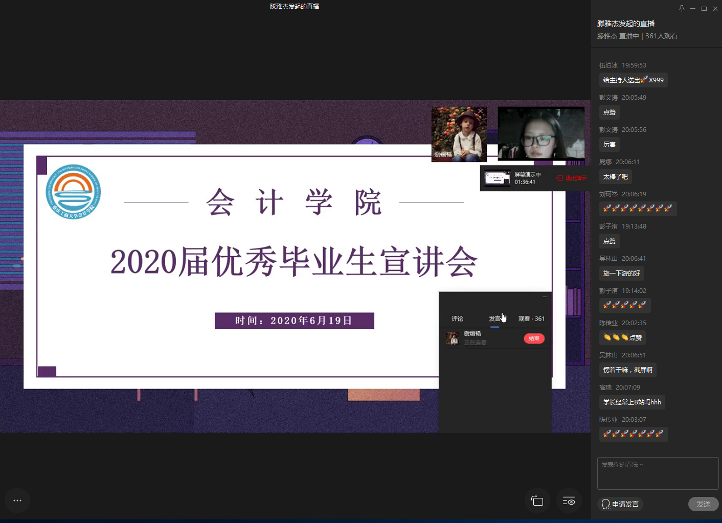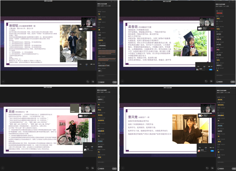 为充分发挥优秀毕业生的示范引领作用,在全院范围内营造学习典型争当先进的良好氛围,引导低年级员工做好大学学业/职业生涯规划,6月19日19:00,由bb贝博艾弗森官方网站分团委主办的2020届优秀毕业生宣讲会在企业微信通过直播方式进行。此次宣讲会邀请到彭文涛老师和来自2016级ACCA吴晓等五名优秀毕业生,学院2018级、2019级近400名同学参加了宣讲会。
