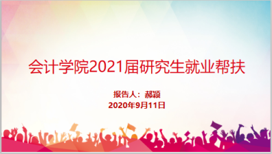 郝颖副书记介绍了研究生就业帮扶政策。首先,她从国家、学校和学院三个层面介绍了毕业生就业帮扶政策与措施;其次,她从就业心理调适、职业生涯规划、就业技巧培训等方面出发,介绍了学校心理咨询中心、校外心理辅导途径、老员工职业生涯发展咨询中心、吉讯职业测评系统等诸多帮扶毕业生就业的平台;随后,她着重介绍了学院的就业帮扶措施,提供了各种搜集就业信息的渠道;最后,她希望同学们“认清就业形势、坚定就业信心,明确就业目标、放平就业心态,拓宽就业渠道、考虑全面就业,珍惜就业机会、积极主动就业”。