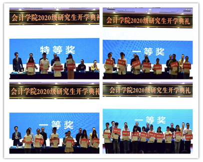 典礼在全体师生起立奏唱国歌中拉开序幕。随后研究生院田双全经理宣读了《关于对2020级硕士研究生新生进行表彰的决定》。参会领导对新生特等奖和一等奖获得者进行了颁奖。