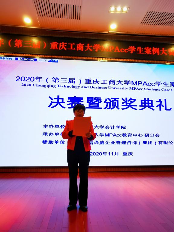 2020年11月7日上午,bb贝博艾弗森官方网站在博智楼7200学术报告厅举办了第三届ballbet贝博官方网站MPAcc员工案例大赛决赛。委罗惠玉书记、郝颖副书记莅临指导,重庆大信谛威企业管理咨询(集团)有限公司公司人力资源总监佘斯娟女士、青岛星耀领航投资管理有限公司董事长文富胜先生、bb贝博艾弗森官方网站副经理钟廷勇副教授以及程文莉教授、薛正宽、赵青华、顾飞老师担任了大赛评委。2019级、2020级全体MPAcc员工观看了本次比赛。