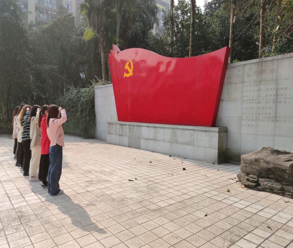 随后,本月转正党员与新发展党员来到宣誓广场,面对党旗,庄严宣誓,重温入党誓词。