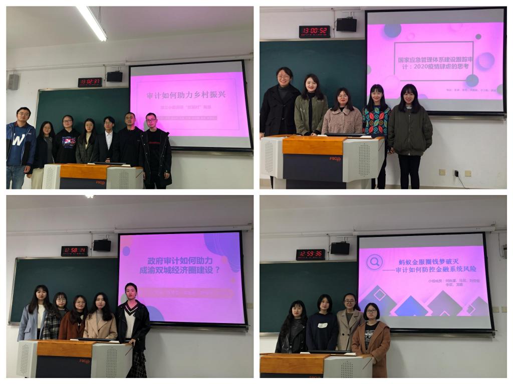 此次沙龙采取教师主导,员工主讲的翻转课堂的形式。首先,蒋水全博士带领员工认真学习全会理论热点,进一步加深对十九届五中全会精神的认识理解。审计专硕的员工也分组上台展示了各自的政治学习和理论研究成果。研究生第二党支部马芸、马菡嵘、邵懿分别就《学懂弄通做实——十九届五中全会对当代研究生的启示》、《新时代背景下党员如何更好地起到示范作用》、《审计专硕员工如何把握发展主动权、重塑竞争新优势》等选题进行了精彩的阐述。蒋水全博士分别给出点评意见并结合自身经历,分享了他对于审计人使命与担当的看法。他指出,作为大国审计服务的输出者、大国审计形象的传播者、大国审计文化的展示窗口,同学们将成为我国审计文化软实力的重要参与者,因此要努力感悟时代精神、积极服务社会。