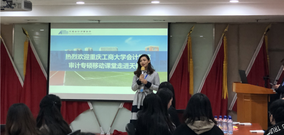 随后,天健会计师事务所重庆分所审计业务专业技术部经理、全国会计领军人才魏倩结合自身工作经验,从职业发展的角度为同学们讲授了成为一名优秀审计人所必需的要素:团队合作精神、责任心、细致严谨、有逻辑思维、有不断克服困难的毅力以及良好的沟通能力。同时,她结合天健对员工的素质和技能要求,也给同学们提出了在校学习及实习实践方面的建议。