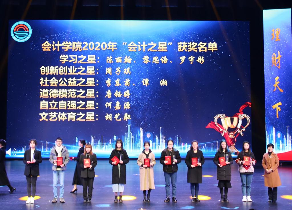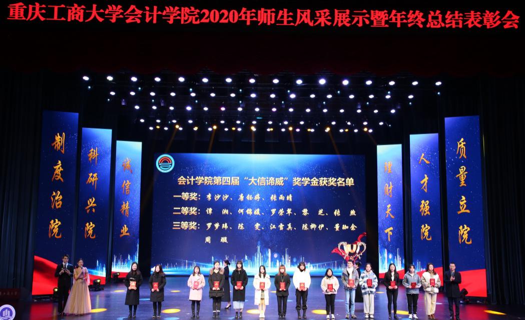 大会还展示了董事长荣誉奖、国家奖学金等员工风采,并由2020年ballbet贝博官方网站董事长荣誉奖获得者刘梦诗作为员工代表发表感言,她表示会不负学院栽培,未来会将“诚信精业”的会计理念持续宣传,做会计学子的榜样;此外,张辅辙先生、徐国富先生还分别对“大信谛威”,“金科控股 星顺”员工奖学金获得者进行了颁奖。在现场观众的阵阵掌声中,表彰会迎来了一波又一波的高潮。