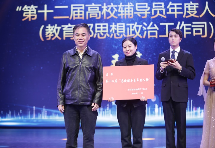 王婷老师作为全国辅导员年度人物的获得者发表感言,她从教师、辅导员两个角色谈了自己在不同角色中围绕“立德树人”核心的体会和感想,表示将在日常辅导员工中,为落实立德树人的根本任务,必须将价值塑造、知识传授和能力培养三者融为一体,全面推进课程思政建设就是要寓价值观引导于知识传授和能力培养之中,展现寓道于教、寓德于教、寓教于乐的辅导培育方针。