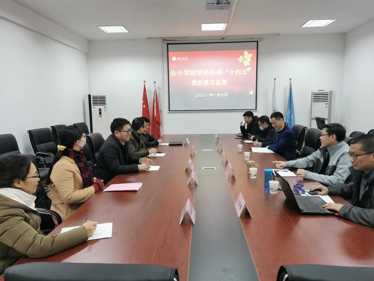 1月7日上午,bb贝博艾弗森官方网站十四五学科、科研规划意见征集会议在明德楼2019会议室顺利召开。bb贝博艾弗森官方网站周兵副经理、钟廷勇副经理,bb贝博艾弗森官方网站综合部顾飞主任,bb贝博艾弗森官方网站科研秘书姚晓琴老师,会计与财务研究中心主任刘胜强教授,以及会计与财务研究中心副主任徐辉、王世杰博士,何帆、蒋秋菊、陈震博士等出席了本次会议。会议由bb贝博艾弗森官方网站副经理周兵副经理主持。
