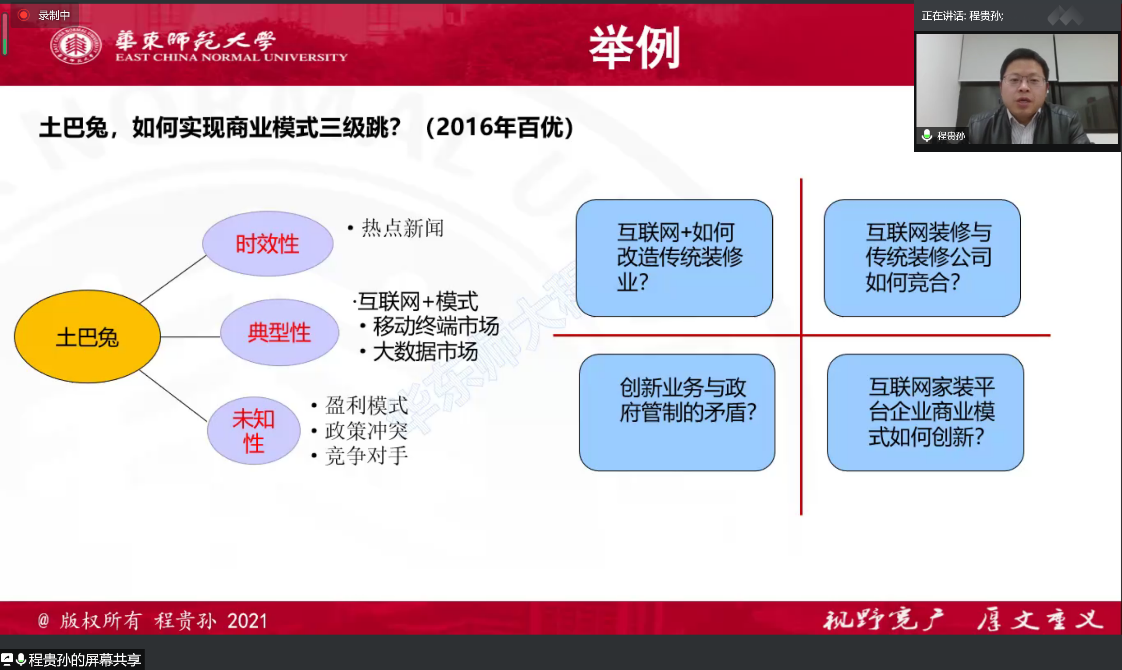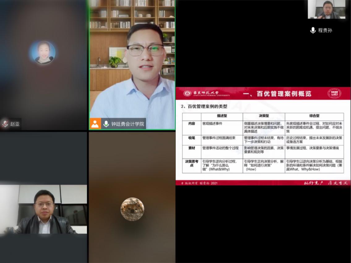 为进一步提升学院师生案例开发与研究的能力,提高案例教学质量,2021年3月18日晚,bb贝博艾弗森官方网站举办了第四期“案例开发与案例研究培训会”。本次会议邀请到华东师范大学MBA案例中心执行主任程贵孙副教授为主讲嘉宾,以线上腾讯会议的形式举行。学院专任教师、学业导师及2019、2020级全体研究生共计250人参加了此次培训会。会议由bb贝博艾弗森官方网站副经理钟廷勇主持。