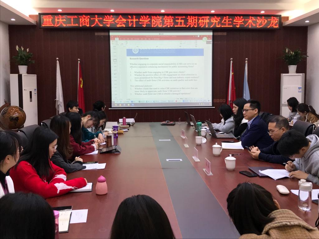 2021年3月24日,bb贝博艾弗森官方网站第五期研究生学术沙龙,也是新学期第一场研究生学术沙龙,在明德楼2019会议室举行。本次学术沙龙邀请到了西南财经大学经济与管理研究院、《Accounting and Finance》副主编廖林博士和ballbet贝博官方网站学术期刊社社长、《西部论坛》执行主编杨文举博士作为特邀嘉宾出席活动;bb贝博艾弗森官方网站研究生、学业导师共计200余人通过线上线下参加了本次研讨会。会议由bb贝博艾弗森官方网站副经理钟廷勇主持。