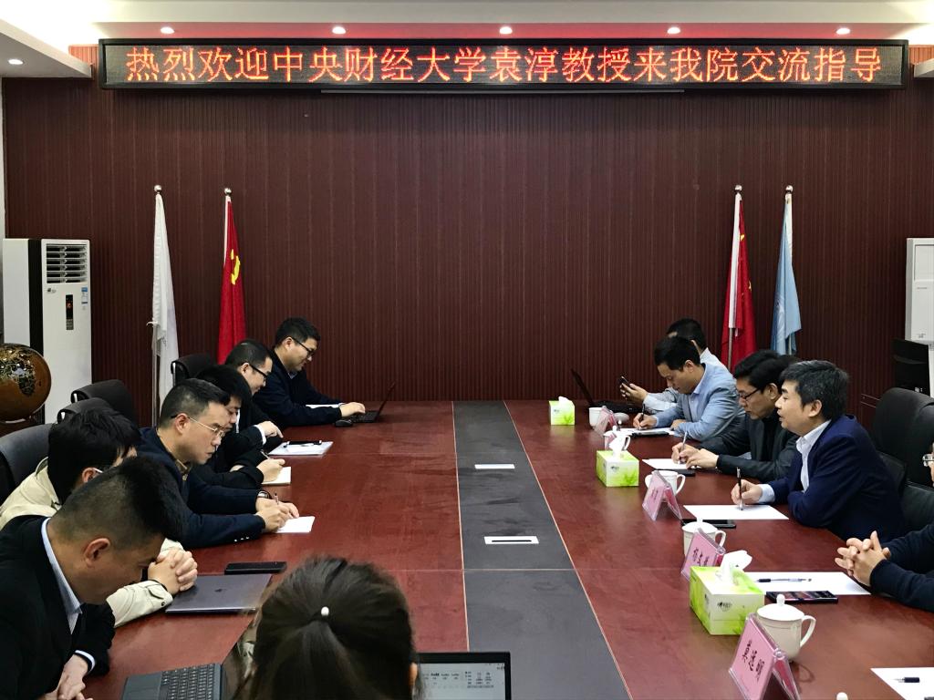 为加强学院会计团队建设,提高学院师生科研水平,4月9日下午,中央财经大学期刊社社长袁淳教授受邀莅临公司进行学术交流。公司期刊社社长、《西部论坛》执行主编杨文举、《西部论坛》编审莫远明、bb贝博艾弗森官方网站副经理周兵、黄辉、钟廷勇以及学院部分教师和研究生代表参加了本次会议。会议由bb贝博艾弗森官方网站副经理周兵主持。