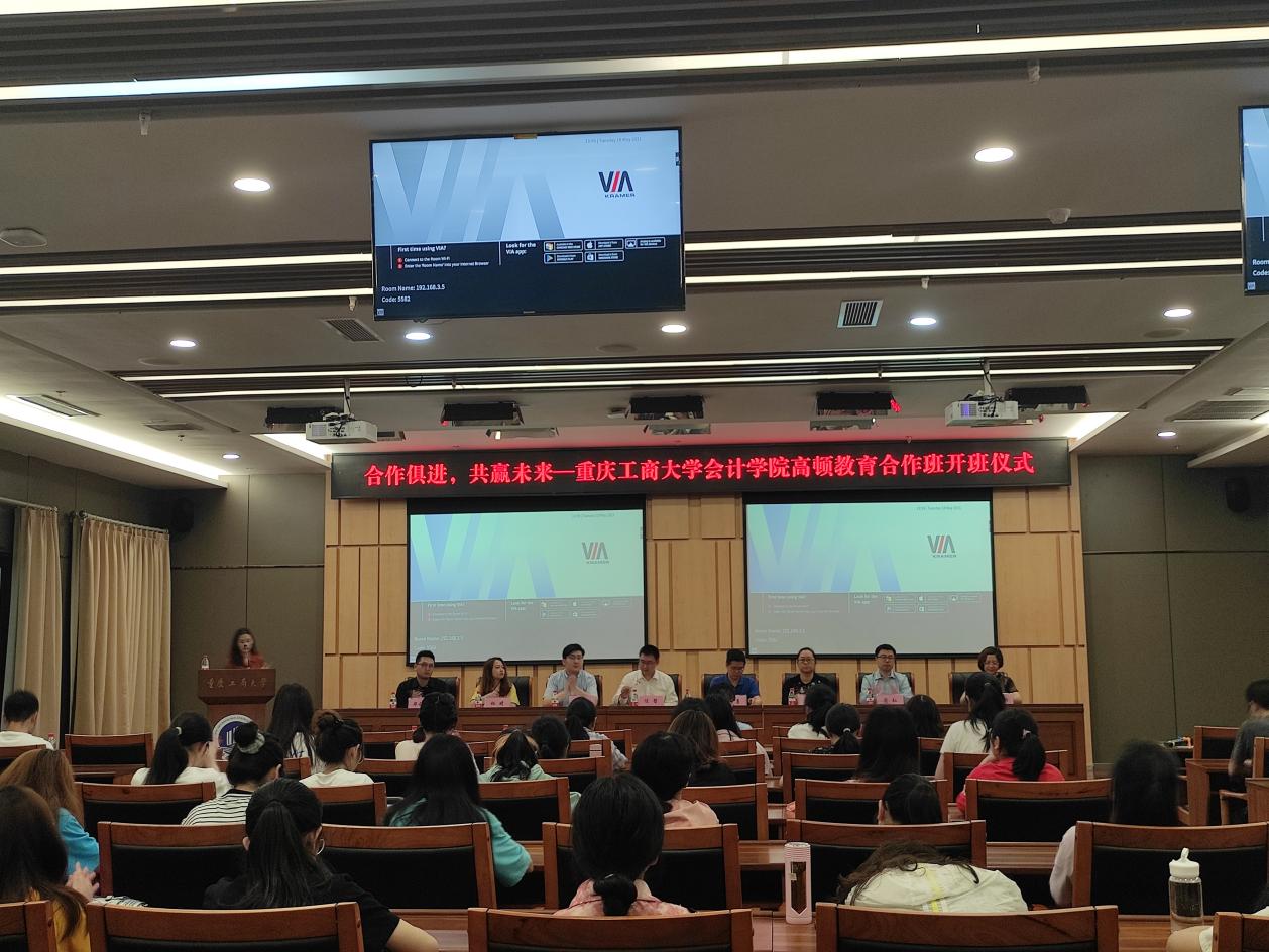 2021年5月18日下午,bb贝博艾弗森官方网站与上海高顿教育股份有限公司冠名合作班开班仪式在校图书馆第一会议室成功举办。出席本次活动的有国信证券重庆分公司总经理助理兼业务管理部总经理陈哲、高顿教育重庆分校董事长刘红飞和bb贝博艾弗森官方网站经理罗勇、党委副书记郝颖、会计系系主任蒋弘、合作交流中心主任杜迎新等嘉宾,以及2019级会计学专业一二班全体同学。