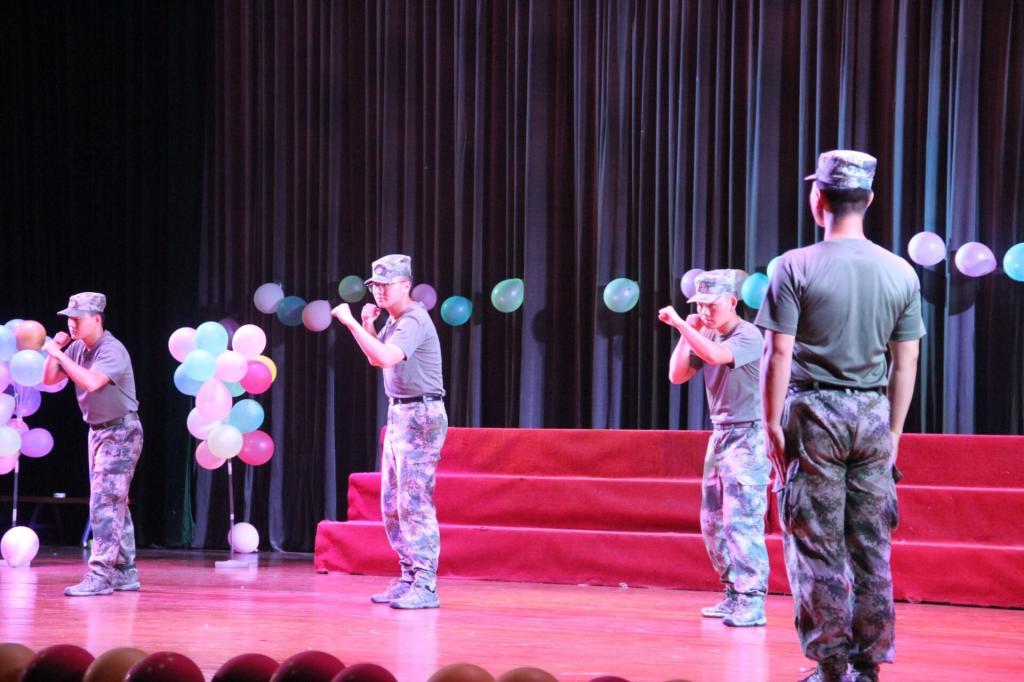 一身靓丽的迷彩服,犹如五线谱上跳动的旋律,演奏属于当代老员工的精彩篇章。此次军训文艺晚会在同学与教官们的共同演绎下,活动现场精彩不断,激情四射,不仅达到了劳逸结合的效果,而且彰显着工商大学子的风采与活力。