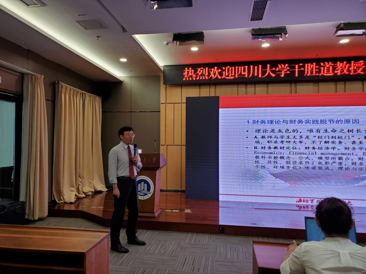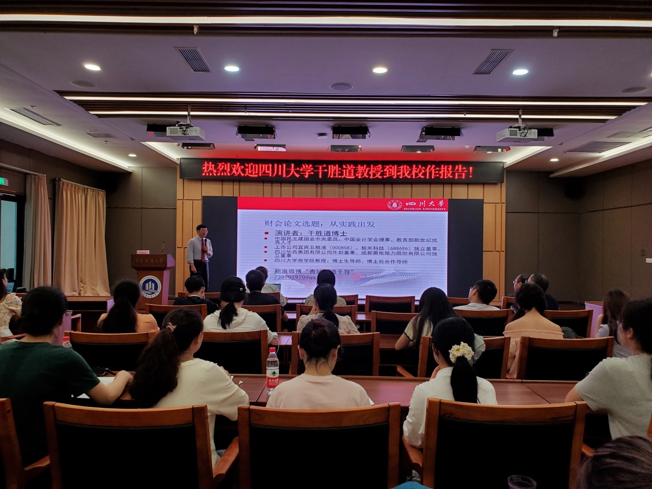 2021年7月9日下午,bb贝博艾弗森官方网站第二十九期会计名家大讲堂在图书馆第一会议室进行,四川大学干胜道教授应邀为公司师生做了题为“财会论文选题:从实际出发”的专题讲座。