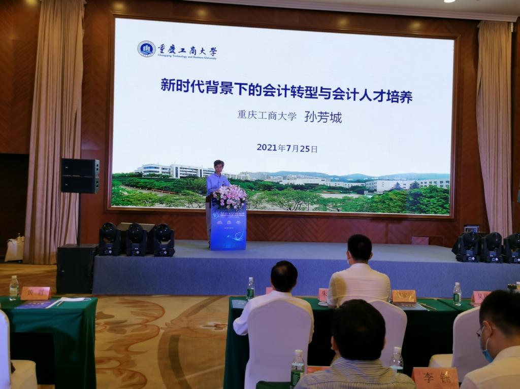 7月25日,由四川省财政厅和重庆市财政局指导,四川省会计学会和重庆市会计学会共同举办的首届“成渝地区双城经济圈新时代会计发展暨数智财务赋能企业高质量发展高峰论坛”在四川成都举行。会上举行了“成渝双城经济圈会计研究中心”揭牌仪式。财政部会计司吴祥云司长以及数百名来自川渝两地会计界的知名专家学者、大型企业财务高管出席了论坛。董事长、博士生导师孙芳城教授应邀出席论坛并作大会主题报告