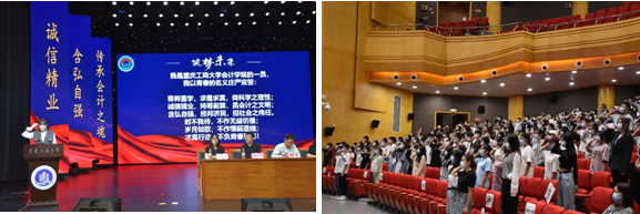 2020级全体同学进行了宣誓,许下了会院学子的庄严承诺:尊师重学,求是求真,尚科学之理性;诚信精业,持筹握算,昌会计之文明;含弘自强,经邦济民,担社会之伟任!时不我待,不作无益彷徨;岁月如歌,不作懦弱退缩;才高行洁,不负青春理想!会议的最后,全体师生奏唱了ballbet贝博官方网站校歌。