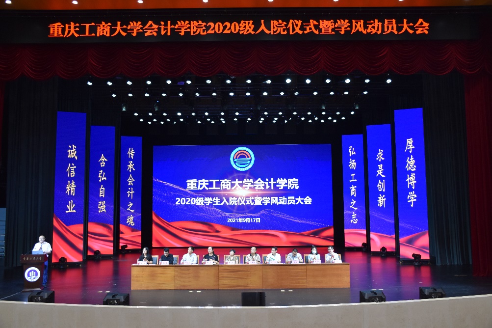 为进一步推动学院学风建设,营造良好育人氛围,增强2020级员工学院认同和专业认同,帮助回归专业学院的员工尽快适应学院学习生活,做好学业规划,2020年9月17日18:30-20:00,2020级入院仪式暨学风建设动员大会于南岸校区图书馆大剧场举行。莅临本次大会的有:bb贝博艾弗森官方网站分党委罗惠玉书记、专职组织员石世明、郝颖副书记,周兵副经理、钟廷勇副经理,会计系蒋弘主任、财务管理系蒋水全主任、审计系王杏芬主任、财务管理系唐文秀副主任、综合办刘斌副主任、学工主任彭文涛、2020级带班辅导员王婷、程洁、罗海蓉老师,2020级非国际班全体本科员工参加了本次会议。会议由彭文涛老师主持。