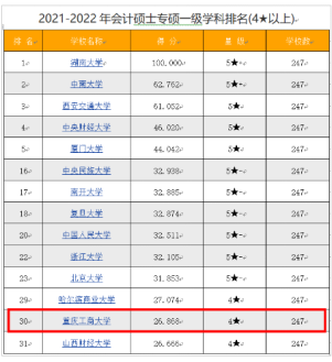 2021.11“会计专硕”学科进入全国排名前20%四星培养单位
