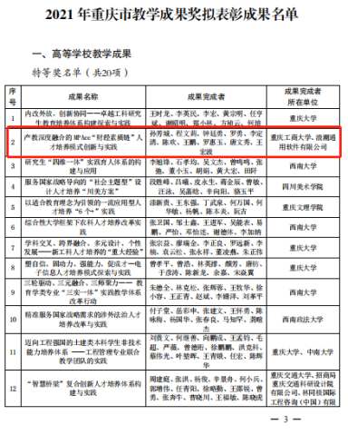 2021.12bb贝博艾弗森官方网站入选重庆市优秀教学成果奖特等奖1项,二等奖2项(公示中)