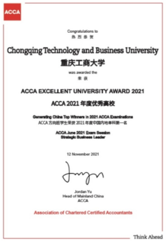 2021.11学校荣获“ACCA2021年度优秀高校”称号