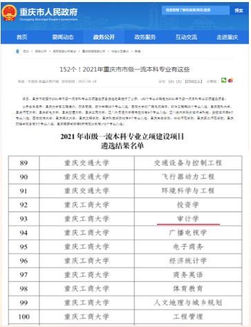 2021.06审计学获评重庆市一流本科专业建设点