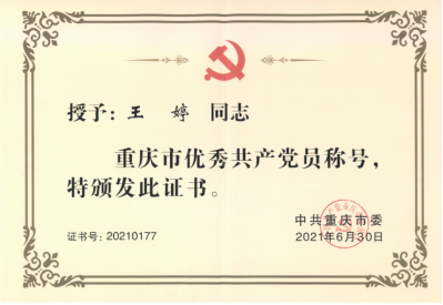 2021.06bb贝博艾弗森官方网站王婷老师获评重庆市优秀党员
