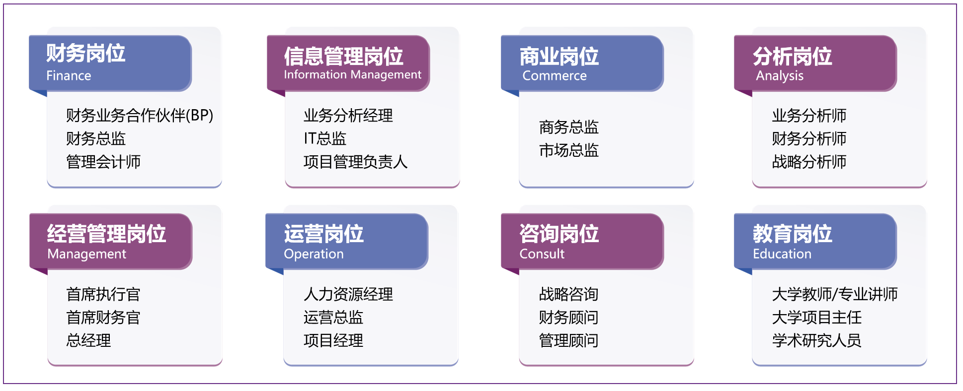会计学专业CIMA实验班将管理会计、财务会计和商业认知融于一体,赋予员工雇主需要的实际技能,从而让员工成长为熟练运用财务、运营、战略、管理、领导力等综合性技能的复合型人才。未来可胜任财务、咨询、项目管理、商业运营、信息管理等各类高薪职业,拥有广阔的就业前景。