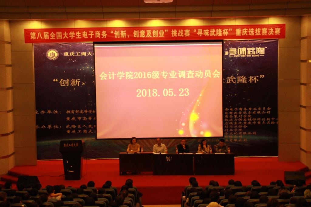 2018年5月23日12时40分,2016级专业调查动员大会于南岸校区博智楼7100报告厅顺利举办。出席本次大会的领导和老师有bb贝博艾弗森官方网站分党委副书记尹建平、副经理黄辉、审计系主任赵光宏、财务管理系副主任杜迎新、会计系主任蒋弘、教务办老师李长艳以及2016级全体辅导员。2016级全体同学们参加了此次大会。