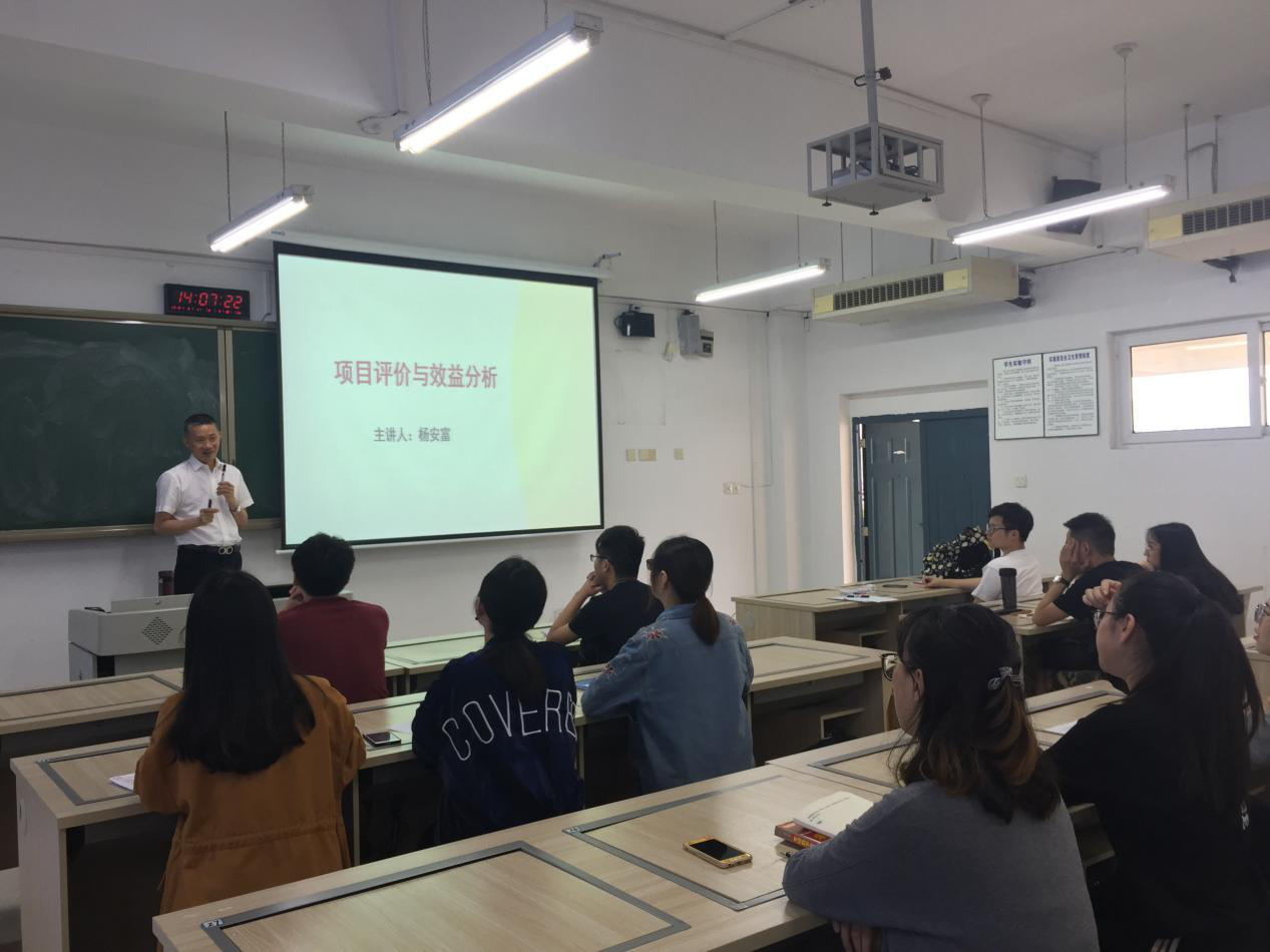 bb贝博艾弗森官方网站2015级卓越人才实验班于2018年6月1日下午14::00在博智楼07602举办了“项目评价与效益分析”专题讲座,主讲人为杨安富老师,卓越人才实验班全体同学参与了此次讲座。