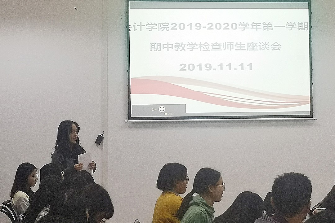 2019年11月11日中午,bb贝博艾弗森官方网站在明德楼2019会议室召开了本学期期中教学师生座谈会。出席会议的有bb贝博艾弗森官方网站分党委书记罗惠玉、副书记尹建平,bb贝博艾弗森官方网站副经理黄辉,校级督导刘淑蓉、李光凤,院级督导潘龙萍、熊亚、赵光宏,系主任蒋弘、杜迎新、蒋水全,综合办教务管理老师、学团办全体辅导员,以及2017-2019级的36位员工代表。座谈会由综合办李长艳老师主持。