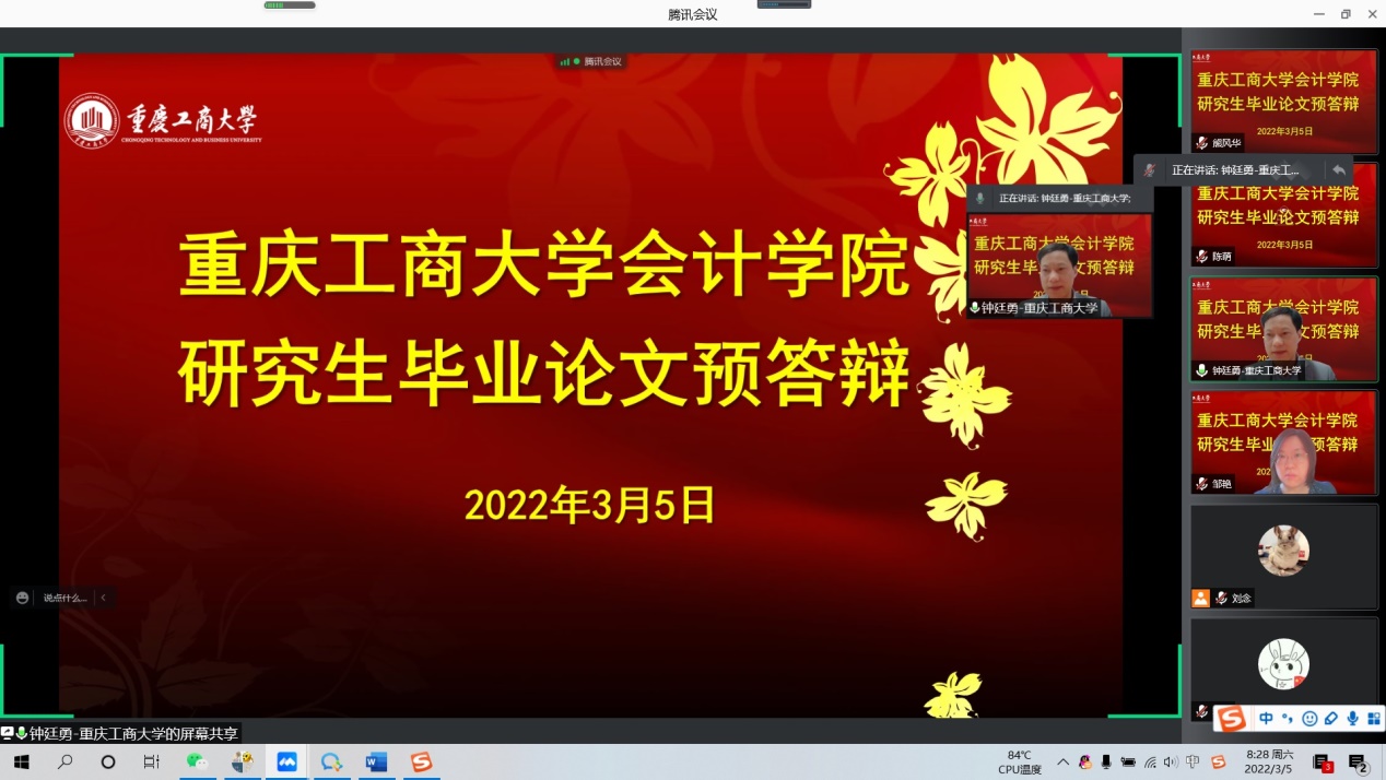 鉴于学校疫情防控工作的整体要求,根据学校近期工作安排、研究生院建议,结合bb贝博艾弗森官方网站研究生答辩的相关安排和要求,3月5日上午,公司研究生教育中心通过网络视频答辩模式顺利举行2019级硕士学位论文预答辩。