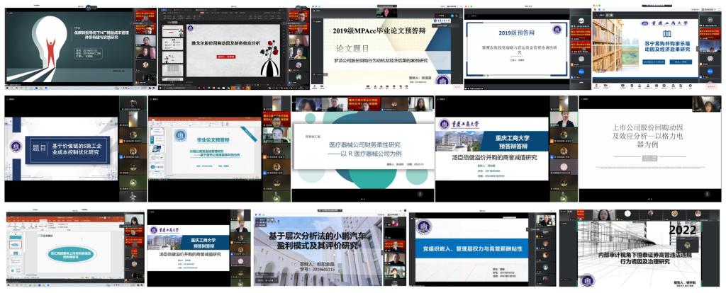 在bb贝博艾弗森官方网站统筹安排与部署下,研究生教育中心扎实做好线上答辩相关准备工作,保障疫情防控期间线上答辩有条不紊。本次答辩共分为15组,共148名研究生参与答辩,其中学硕3组,专硕12组。来自北京航空航天大学、北京工商大学、西南财经大学、上海财经大学、重庆大学、西南大学、东北师范大学、吉林财经大学、湖南工商大学等会计审计导师担任组长,与公司部分硕士研究生导师和事业导师共同组成答辩专家组,为同学们的论文进行强化指导。