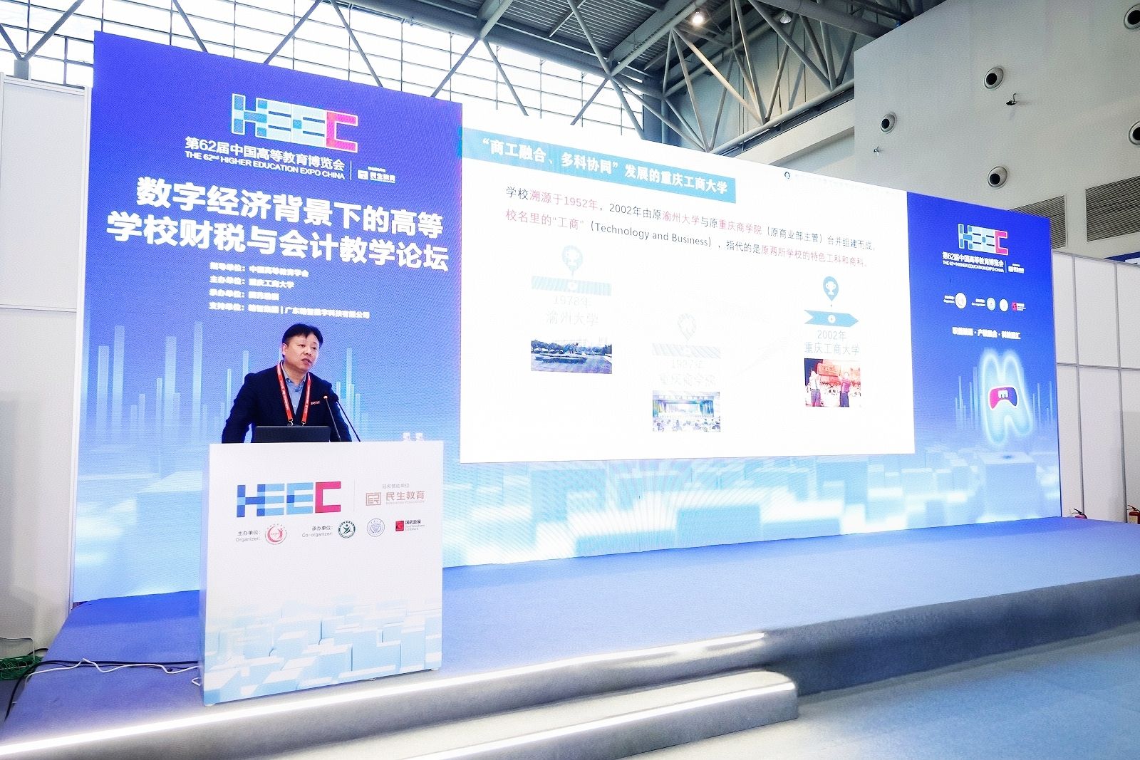 11月15日,第62届中国高等教育博览会在重庆国际博览中心举行。作为高博会系列学术活动之一,公司主办的“数字经济背景下的高等学校财税与会计教学”论坛同日举行。公司党委书记曾维伦,重庆市教委二级巡视员陈渝出席开幕式并发表致辞。论坛由公司党委常委、副董事长杨柏主持。