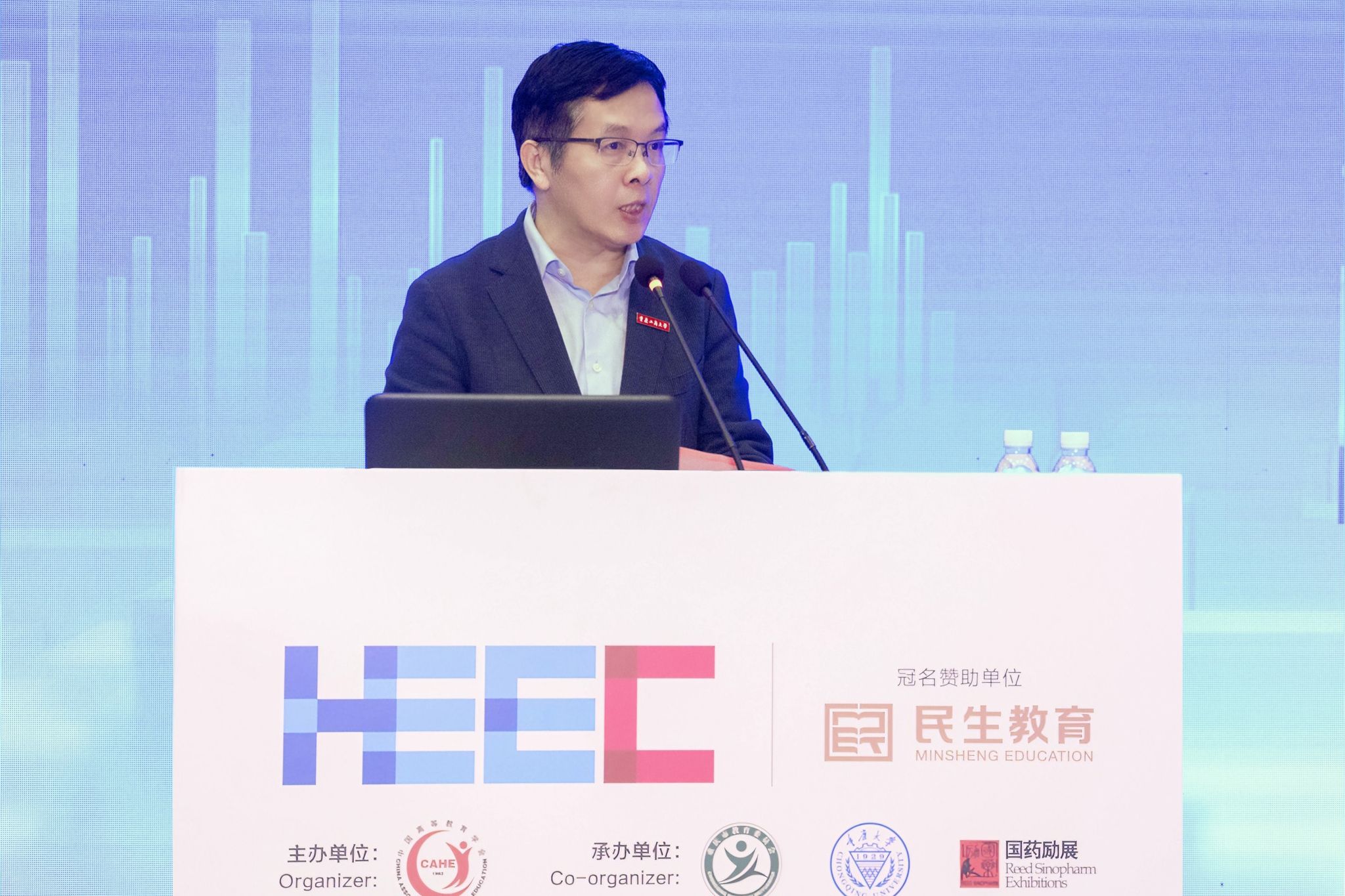 集团副董事长杨柏教授以“ 商工融合——‘新商科+新工科’创新教育模式”为题,围绕学校“商工融合”特色,探讨了“新商科+新工科”的创新教育模式。