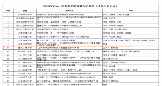4月25日,会计硕士专业学位(以下简称MPAcc)优秀教学案例组织委员会公布2023年MPAcc优秀教学案例。公司王杏芬教授与其研究生郭婉滢撰写的案例《上海电气业绩爆雷背后的重重迷雾与真相》赫然在列。这是公司师生首次获批MPAcc优秀教学案例。MPAcc优秀教学案例评选是教育部学位与研究生教育发展中心和全国会计专业学位研究生教育指导委员会为进一步满足会计专业学位案例教学需求,提高案例教学质量,开展的征集和评选活动。该活动由全国会计专业学位研究生教育指导委员会指导,联合多家MPAcc培养单位共同发起。通过案例推荐、形式审查、匿名通信评审、会议集中评审、组委会审批、公示六个环节评选优秀教学案例,最终,30篇教学案例获得2023年MPAcc优秀教学案例奖,165篇教学案例获得入库。