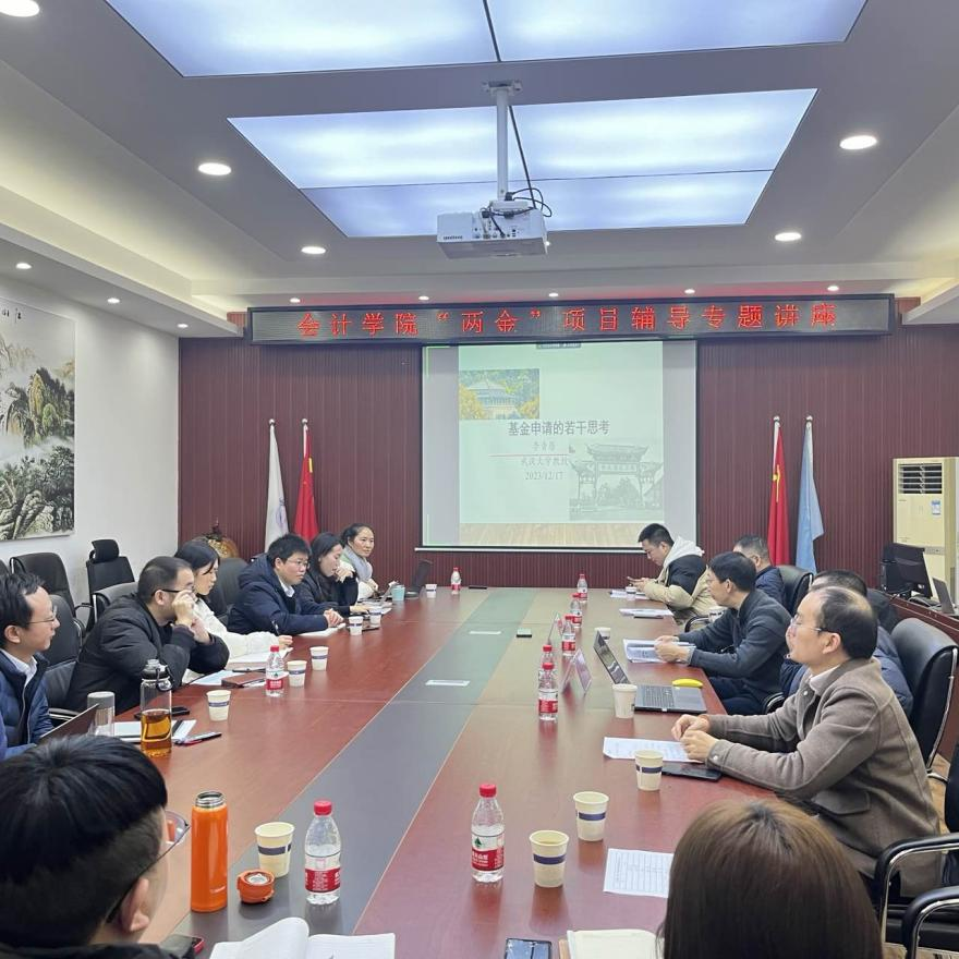 12月17日上午,bb贝博艾弗森官方网站国家两金项目辅导专题讲座在明德楼2019会议室顺利举行。武汉大学李青原教授莅临为公司教师作“会计类两金项目选题与申报思路来源方法和总结”的专题讲座。ballbet贝博官方网站财务与会计研究中心刘胜强、Mpacc主任陈欢及徐辉、韦浪等十九名教师参加。讲座由刘胜强教授主持。
