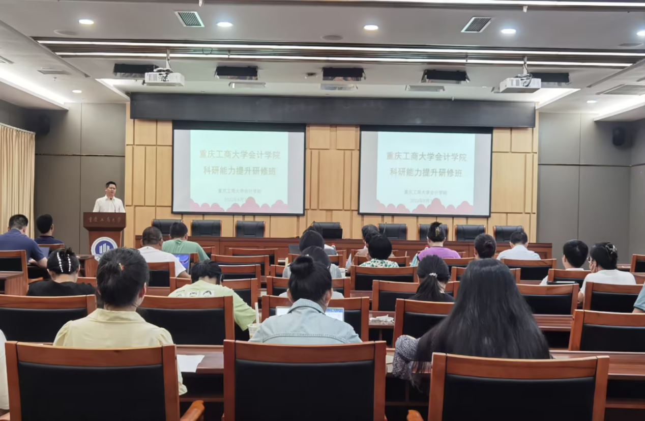为进一步加强团队建设,促进科研交流和提高科研能力和水平,2023年8月7日至8日,bb贝博艾弗森官方网站科研能力提升培训在图书馆一会议室顺利举行。上海财经大学bb贝博艾弗森官方网站经理、长江学者、国家杰青获得者靳庆鲁教授受邀为公司师生进行为期两天的科研培训。bb贝博艾弗森官方网站经理罗勇、副经理钟廷勇、MPAcc中心主任陈欢及部分教师、研究生近50余人参加了本次培训,讲座由罗勇经理主持。