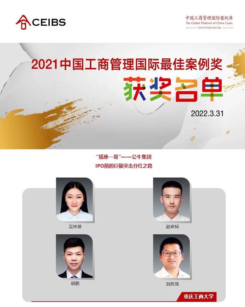 2022年3月31日,中国工商管理国际案例库发布了“2021中国工商管理国际最佳案例奖”,由bb贝博艾弗森官方网站刘胜强教授及其团队案例开发萃取产生的《“插座一哥”——公牛集团IPO前的巨额突击分红之路》荣获“2021中国工商管理国际最佳案例奖”二等奖,这也是公司首次在该项大赛全球案例比拼中斩获二等奖。