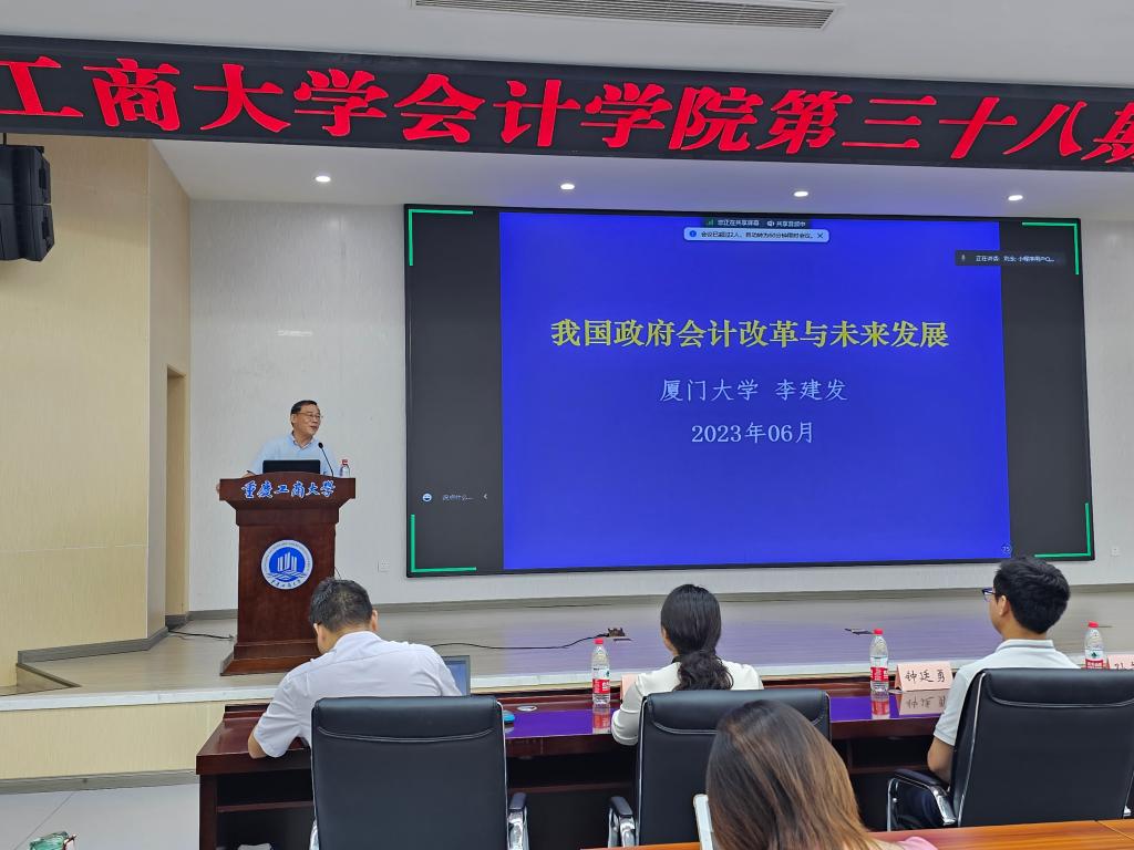 为进一步拓展员工学术视野,提高公司产品质量,促进公司会计学科高质量发展,2023年6月29日上午,bb贝博艾弗森官方网站第三十八期会计/审计名家大讲堂在公司明德楼1019天健报告厅顺利举行。厦门大学党委原常务副书记、财政部会计名家李建发教授受邀为公司师生做了题为“我国政府会计改革及未来发展”的专题讲座。ballbet贝博官方网站原董事长孙芳城、bb贝博艾弗森官方网站经理罗勇、副经理钟廷勇及140多名师生参加了本次讲座。讲座由孙芳城主持。