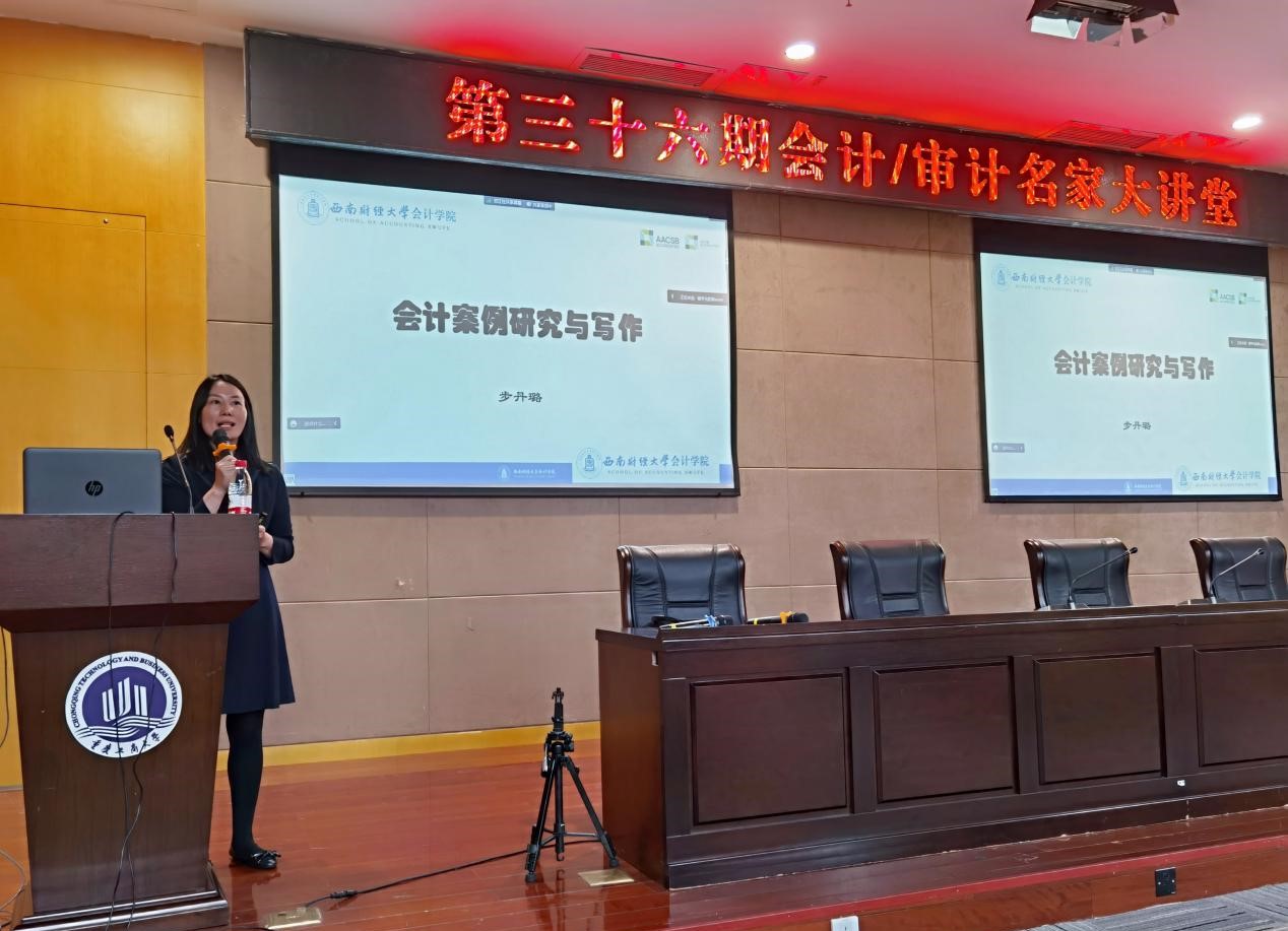 为进一步提升公司研究生学术能力与研究素养,提高研究生教育水平和培养质量,2023年4月26日上午,bb贝博艾弗森官方网站第三十六期会计/审计名家大讲堂在公司图书馆多功能报告厅和线上腾讯会议同步举行。财政部全国会计高端人才、企业会计准则咨询委员会咨询委员、西南财经大学bb贝博艾弗森官方网站步丹璐教授应邀为全院师生们做了题为《会计案例分析与写作》专题讲座。bb贝博艾弗森官方网站分党委书记邓德敏、副经理钟廷勇、MPAcc中心主任陈欢以及200多名师生通过线上或线下方式参加了本次讲座,讲座由钟廷勇副经理主持。