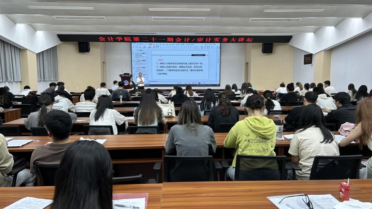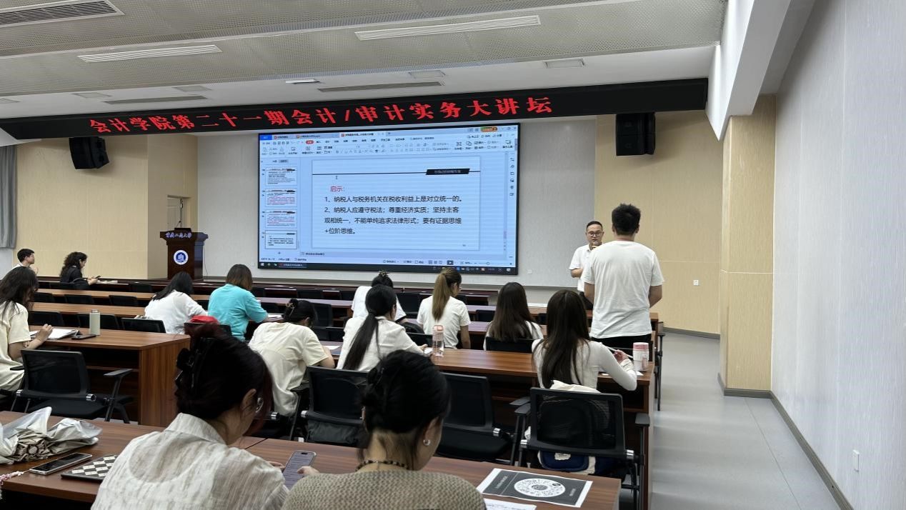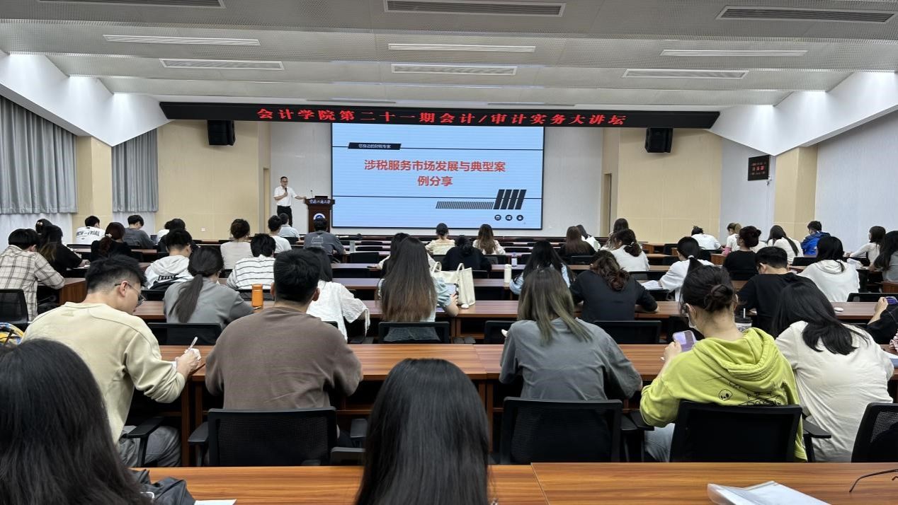 2024年5月10日下午,bb贝博艾弗森官方网站第二十一期会计/审计实务大讲坛在明德楼1019报告厅顺利举行,中税网天运(重庆)税务师事务所有限公司总经理、重庆中特会计师事务所(普通合伙)董事长助理官中明先生应邀为师生们做了题为《涉税服务行业发展与典型财税案例分享》的专题讲座。讲座由研究生教育中心副主任韦浪主持。