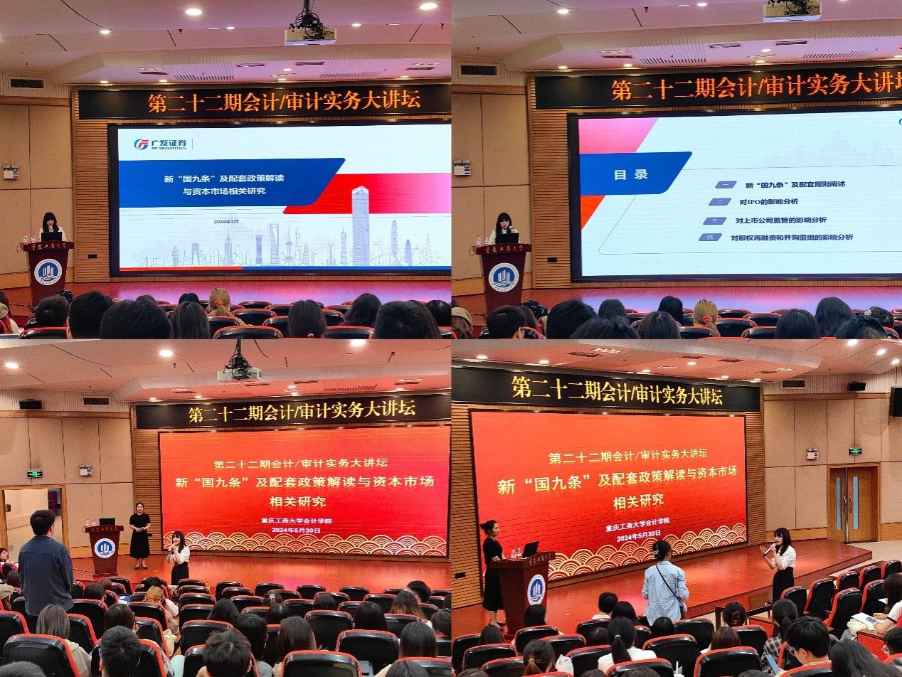 在本次会计/审计实务大讲坛中,同学们深刻领悟了新“国九条”及其配套政策与资本市场的紧密联系。通过本次讲座,同学们不仅拓宽了视野,还获得了宝贵的知识和洞见,受益匪浅。