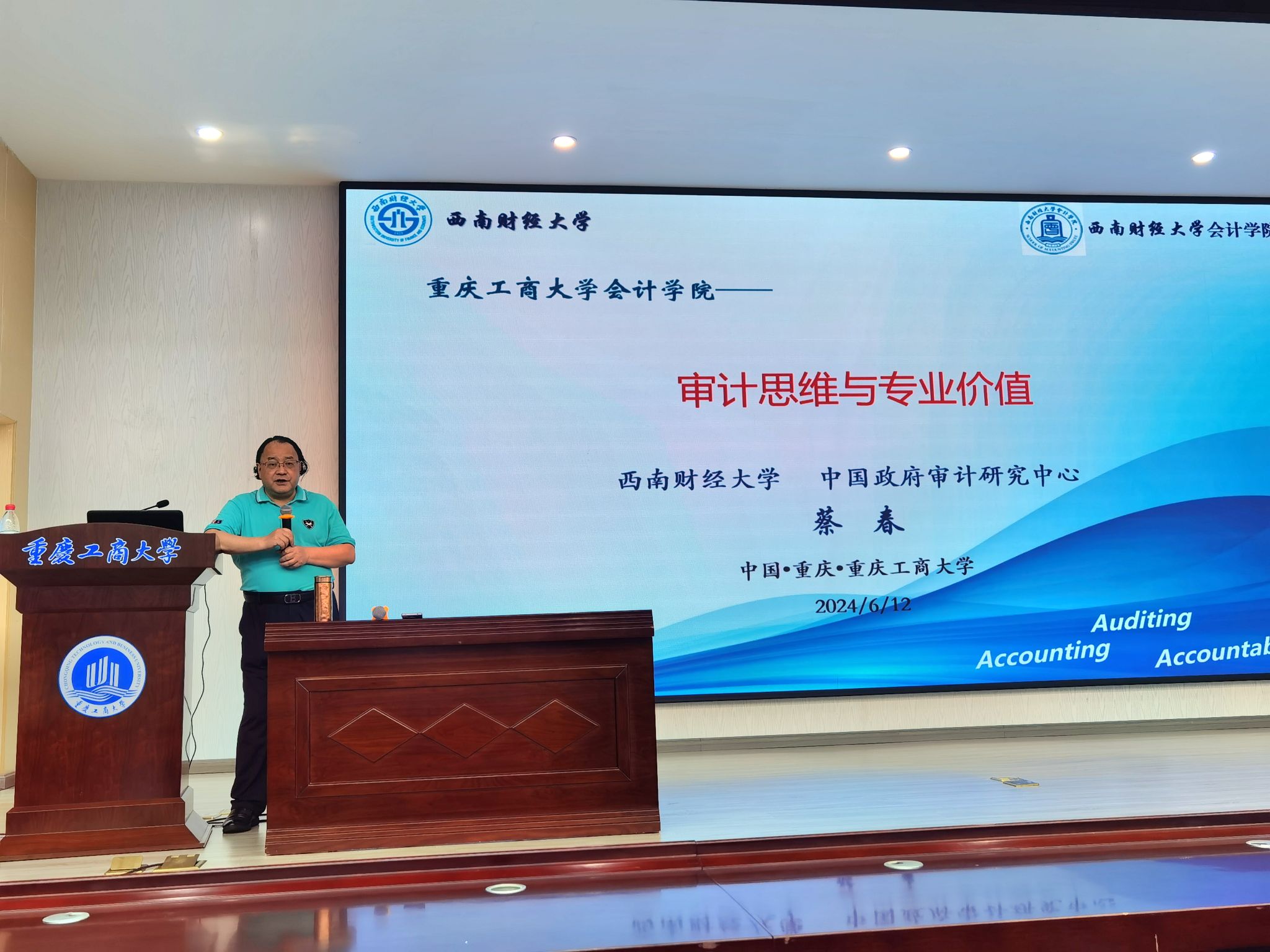 2024年6月12日下午,bb贝博艾弗森官方网站第五十六期会计/审计名家大讲堂在明德楼1019报告厅顺利举行。西南财经大学蔡春教授受邀为学院师生做了题为 “审计思维与专家价值”的讲座,学院120余名师生参加此次学术讲座。本次会议由bb贝博艾弗森官方网站副经理钟廷勇教授主持。