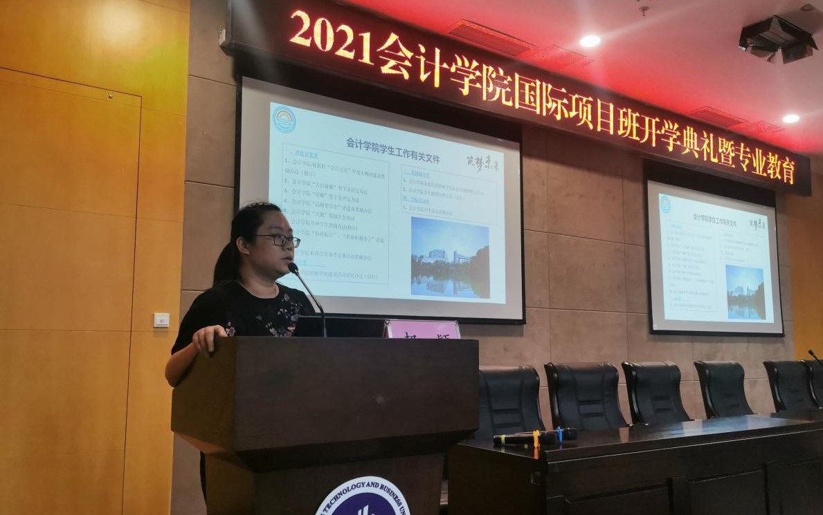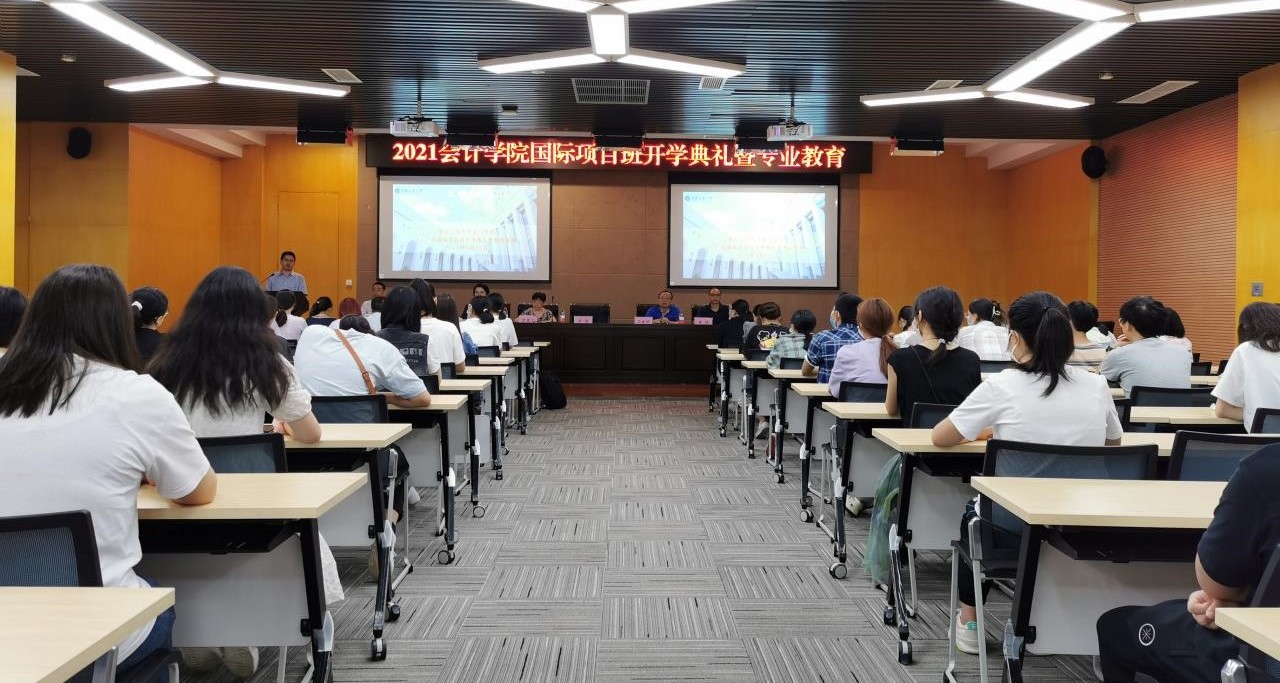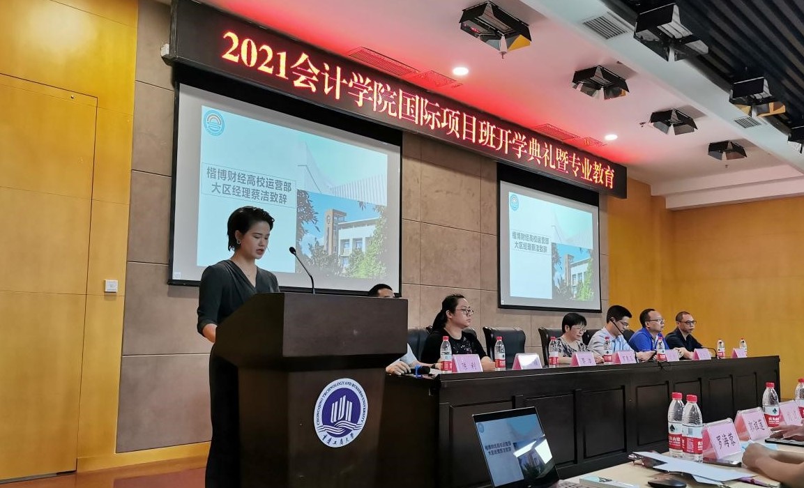 2021年9月10日上午,2021级国际项目班开学典礼暨专业教育在南岸校区图书馆多功能报告厅隆重举行。楷柏财经高校运营部大区经理蔡洁女士,委罗惠玉书记、罗勇经理、石世明专职组织员、郝颖副书记、黄辉副经理,bb贝博艾弗森官方网站国际项目部陈利主任、学工办彭文涛主任、综合办刘斌主任、郭祖莲副主任,2021级国际项目辅导员罗海蓉老师、教务秘书张悯弱老师,以及2021级国际项目班全体同学参加了此次活动。